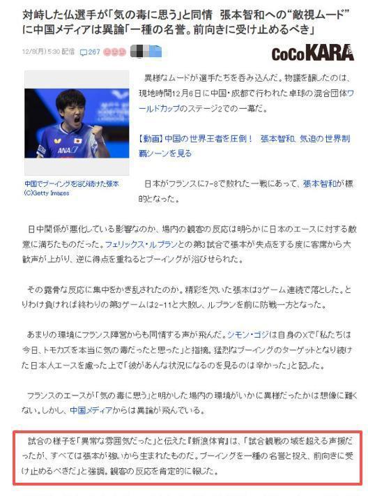 其后,日本一些媒体也随着发声了,认为张本智和碰到的“抱怨厚谊”确实太过了,现场那些侵犯声息一经超出了比赛的规模。