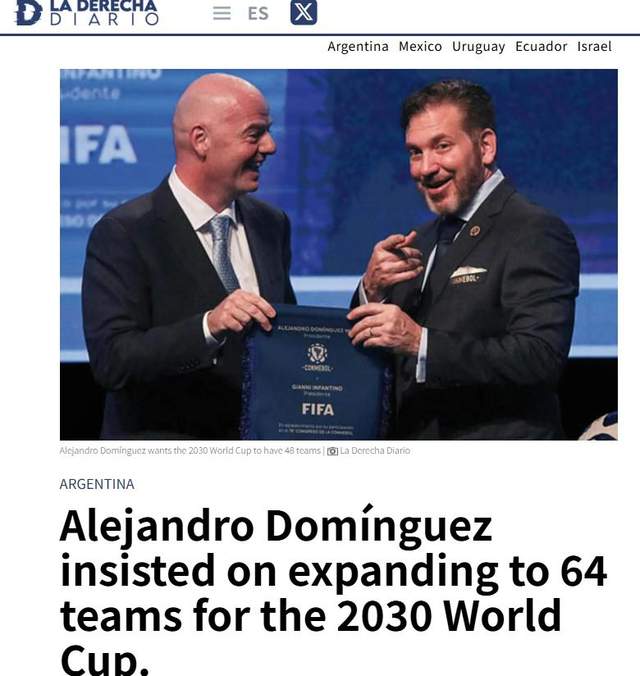本年头外洋足联就曾推敲2030年世界杯扩军到64队的有蓄意,但遭到欧洲等地区的反对,9月份,南好意思足联又一次向外洋足联提倡扩军请求,因凡蒂诺也召伙同议进行究诘。凭据最新报说念,改日几个月将变得至关热切,外洋足联各理事会和代表大会将明配置场和杀青共鸣。