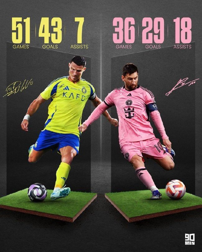 2024年未必就要夙昔,梅西和C罗在夙昔这一年远离交出了若何的答卷?有媒体对此进行了统计。
