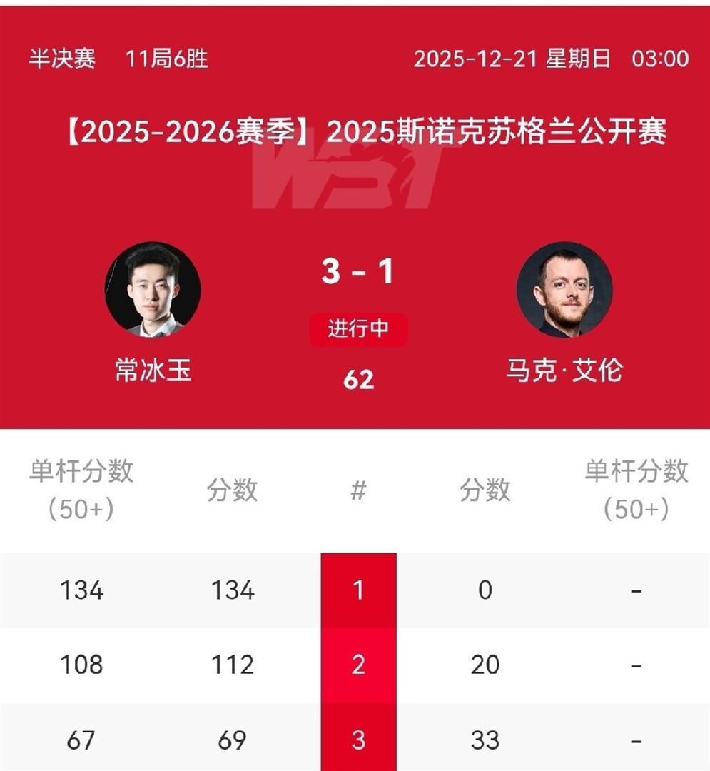常冰玉景况火热,破百如砍瓜切菜,3:1跨越马克·艾伦冲击生计首冠!
