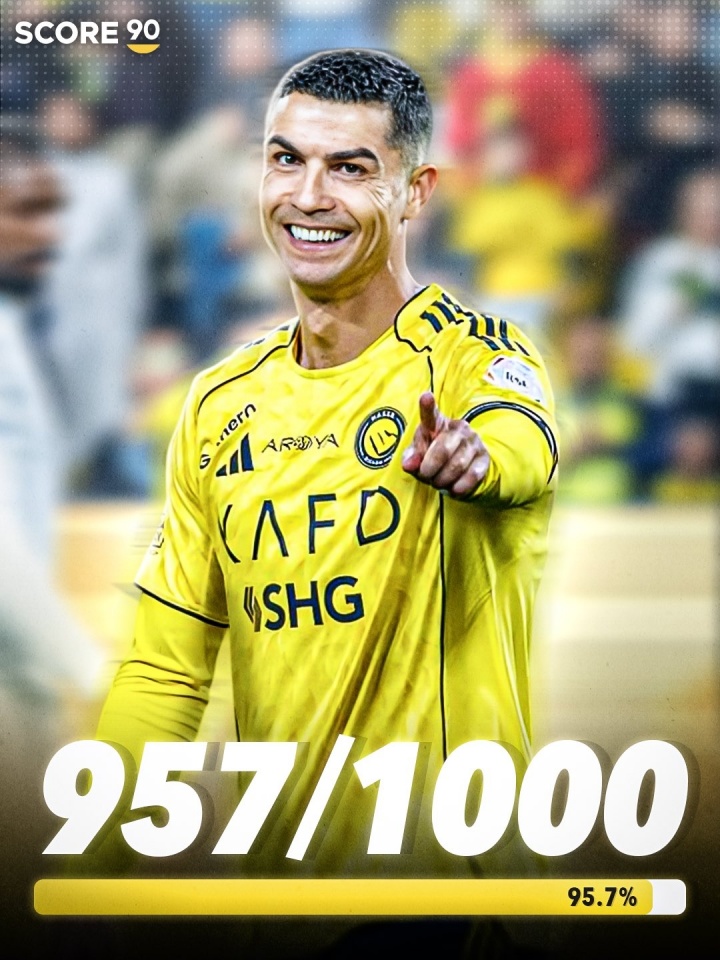 12月31日讯 沙特联第12轮,利雅得告捷2-2客平达曼诱骗,C罗破门得益生存第957粒进球,以41粒进球戒指2025年征途。