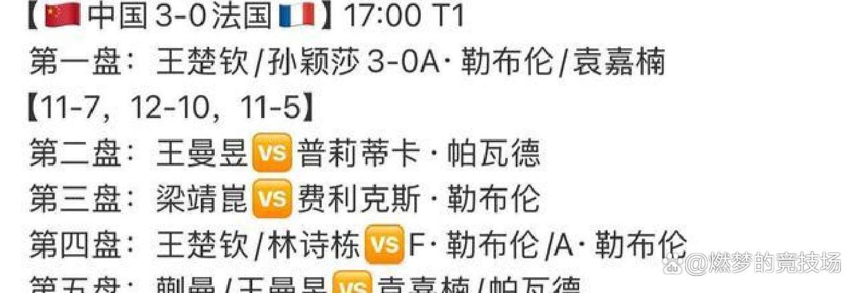 比赛历程十足掌控在国乒手中,法国队念念撬走一局只可念念念念。