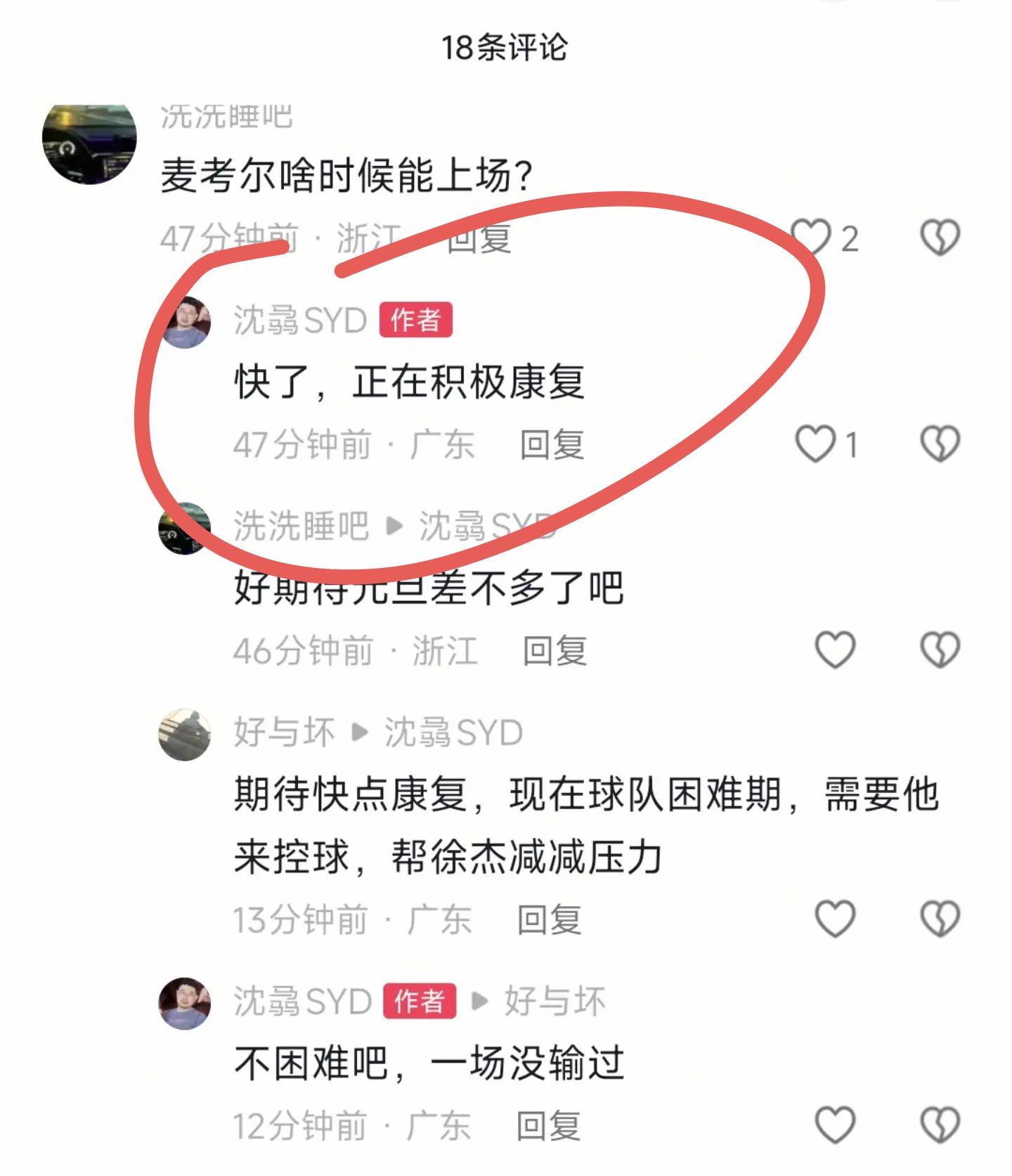 麦考尔加盟广东于今仍未为球队出战一场比赛。说来亦然不幸,他在西宾时膝盖受伤,足足休了一个多月齐没能归附挣扎西宾。由于麦考尔性价比很高,况且打球特色畸形适配球队体系,广东并未鄙俗将其裁掉。近日麦考尔的牙东谈主在个东谈主草率媒体的挑剔区修起了麦考尔的最新情况,暗示麦考尔“快了,正在积极康复”。现时广东唯有徐杰是简直的一号位,如若麦考尔能复出,徐杰的合手球和组织压力将得到极大缓解。不外如故但愿麦考尔将伤病透顶养好再上场,毕竟广东现时的化学反馈还可以,也在一直赢球。
